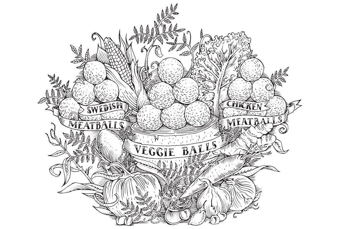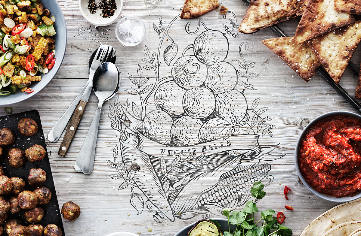 Illustrationerna används i material för att marknadsföra de nya veganska köttbullarna och kläder till personalen. Allting är handritat och skräddarsytt av Alexander Ristori och Oskar Dahlqvist på DQ. Ett tillvägagångssätt som bidrar till hantverkskänslan som de nya veganska köttbullarna har, enligt byrån.