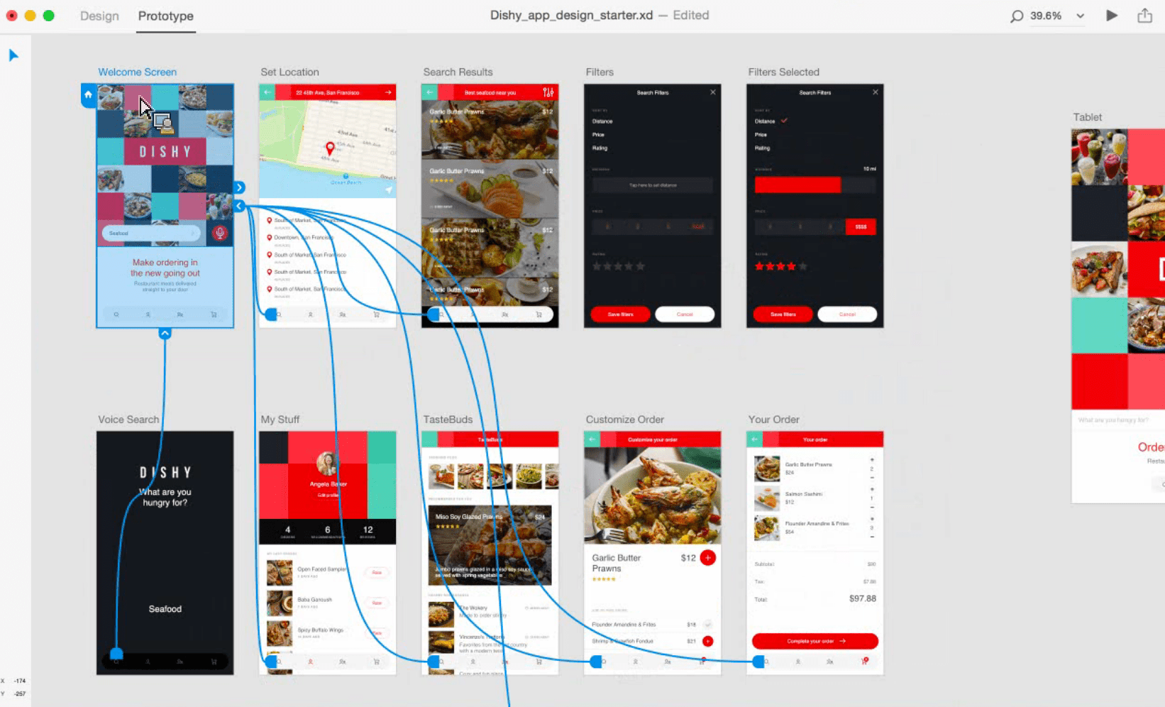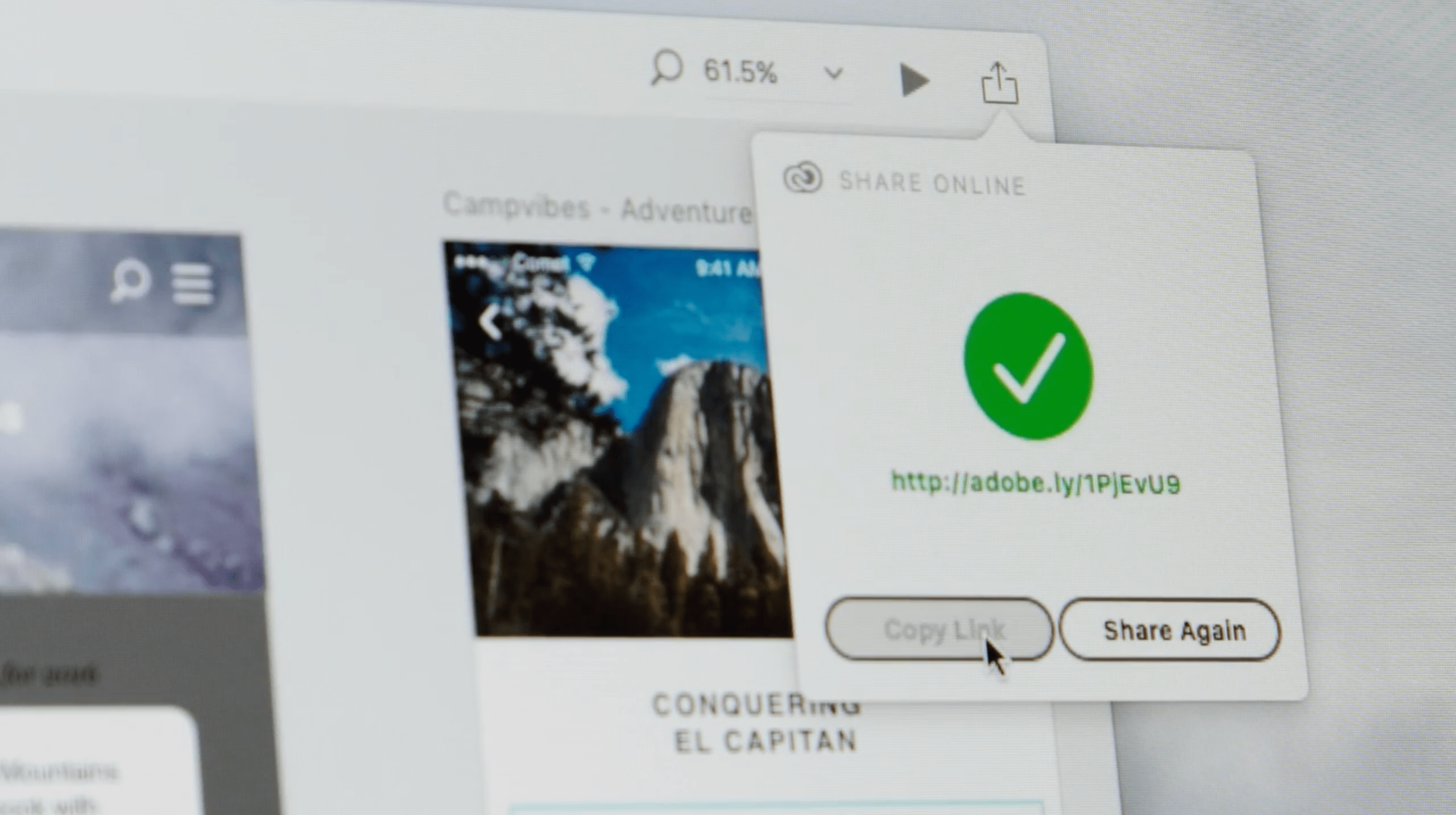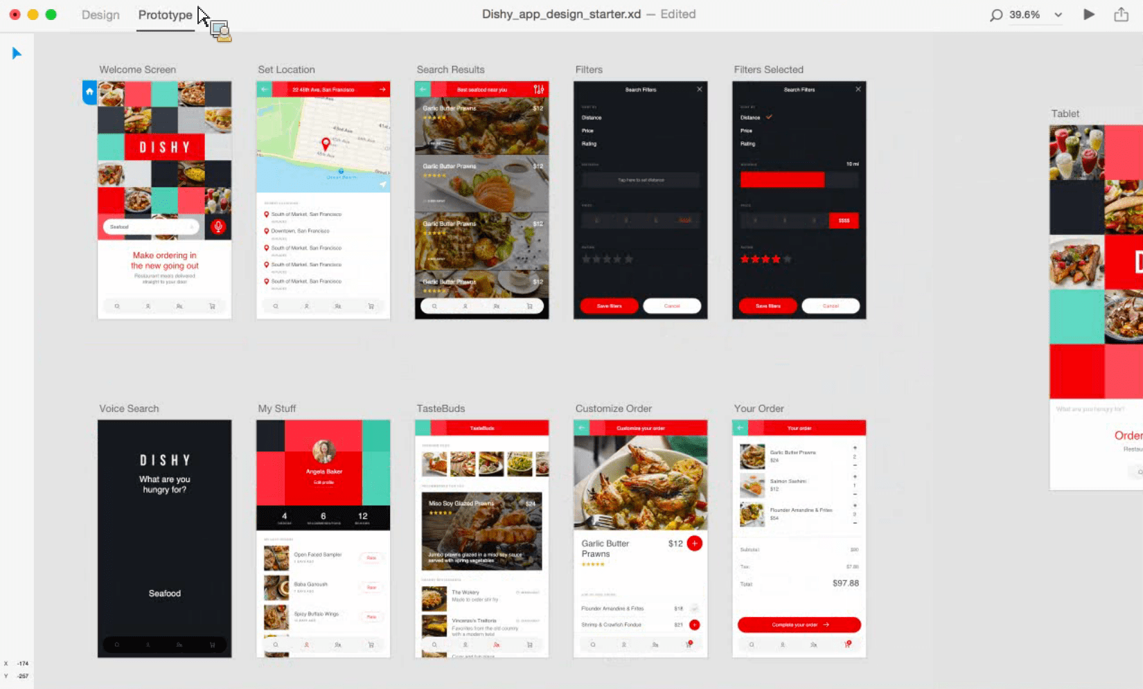 - Inbyggda delningsmöjligheter för att skapa videoinspelningar av dina prototyper eller dela en länk till en interaktiv prototyp som ligger på Creative Clouds servrar.